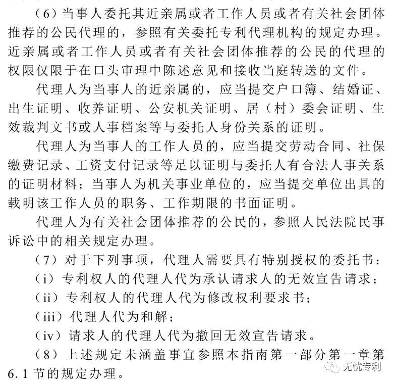 在此之前,国家知识产权局专利局的规定是:专利权无效宣告程序中可以委托专利代理机构,代理机构可以指定一名或多名代理人;中国单位或个人也可以委托公民代理,公民代理一般指当事人的近亲属、单位的工作人员或当事人认为可以代表其维护自身权益的中国公民。