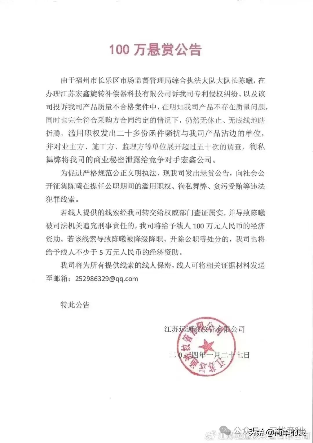 100万悬赏公告-江苏远通波纹管有限公司